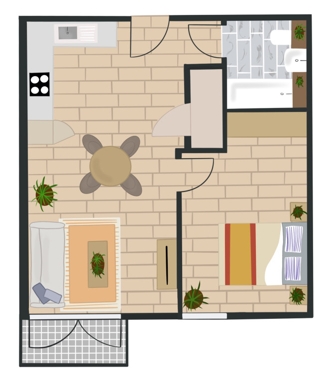 1 Baths • 1 Bed • 1 Bed 538 sqft