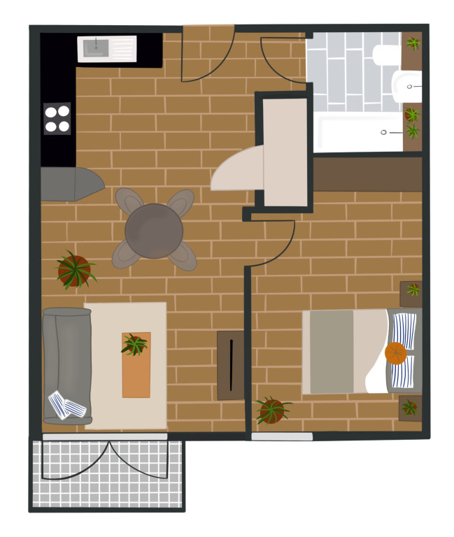 1 Baths • 1 Bed • 1 Bed 538 sqft