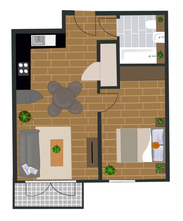 1 Baths • 1 Bed • 1 Bed 495 sqft