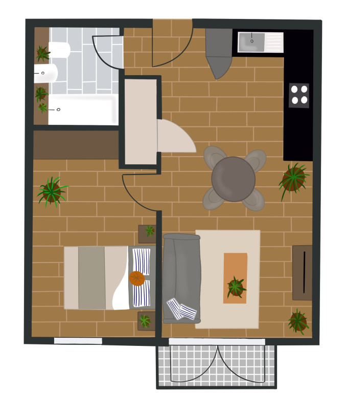 1 Baths • 1 Bed • 1 Bed 505 sqft