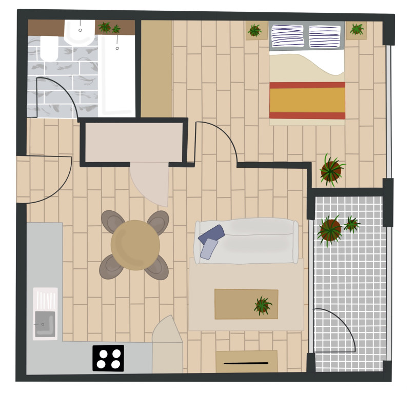 1 Baths • 1 Bed • 1 Bed 495 sqft