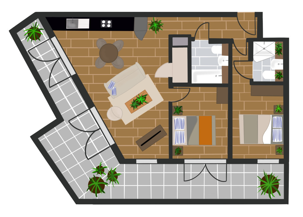 2 Baths • 2 Beds • 2 Beds 775 sqft