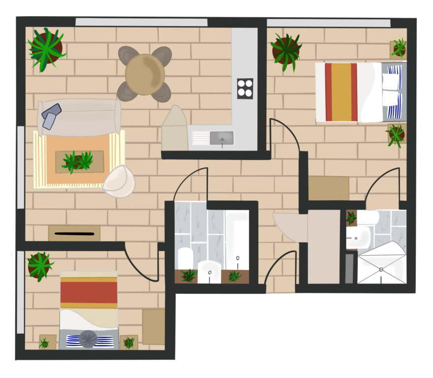 2 Baths • 2 Beds • 2 Beds 670 sqft