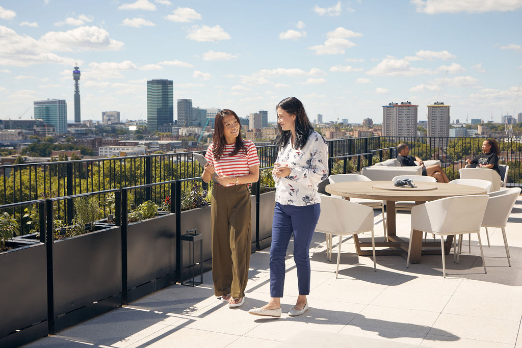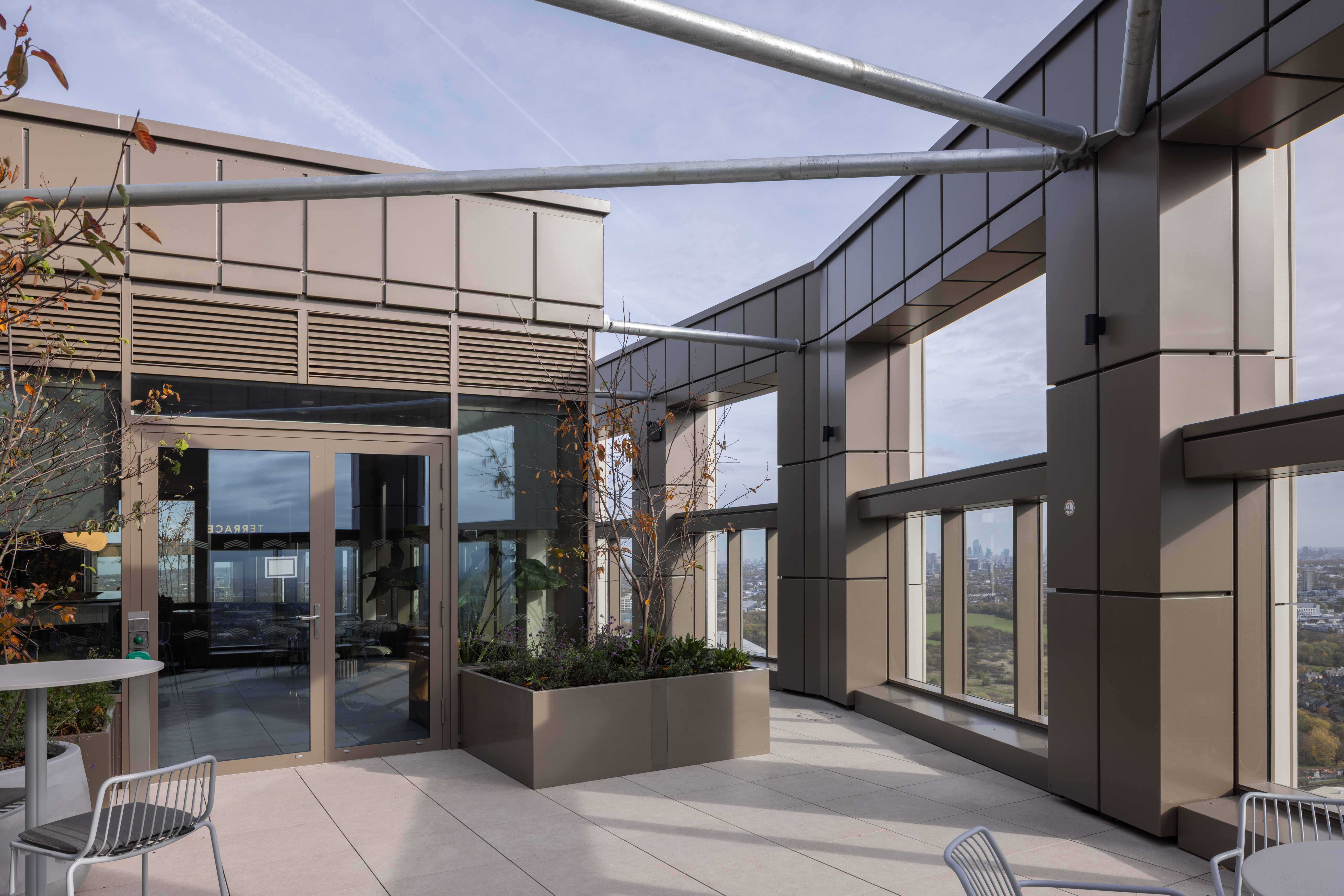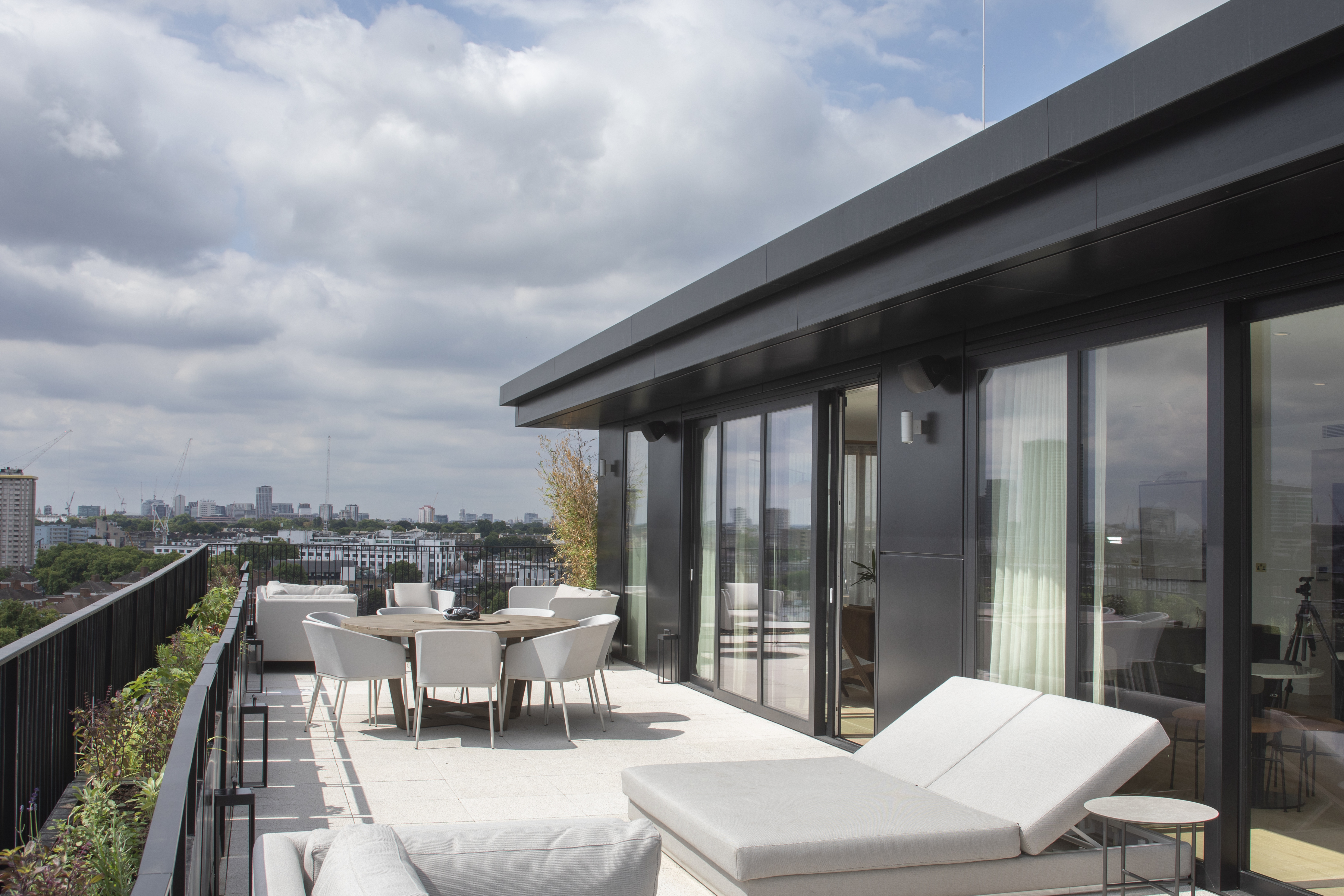 The sky terrace on the 31st floor offers a stylish setting to take in views across West London, making it the perfect place to relax with friends. Complete with plenty of seating and tables.
