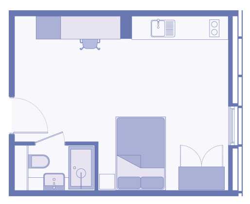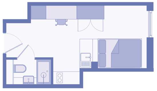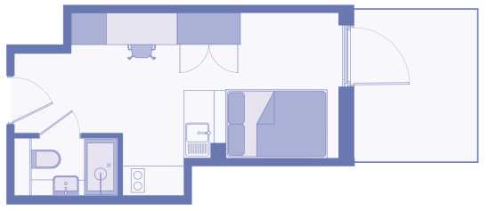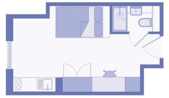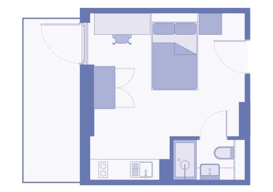 Our Comfy Studios come in a range of shapes and sizes, from 20.4 to 24.8 sq ft, so you can pick the one that feels right for you. Some even come with a terrace, perfect for a bit of fresh air - giving you choice, space, and a spot to make your own.