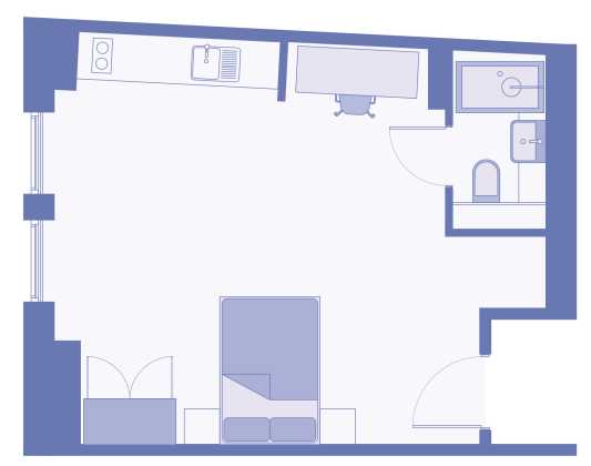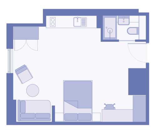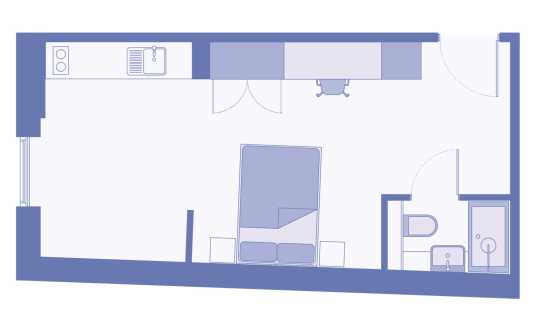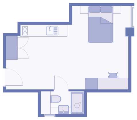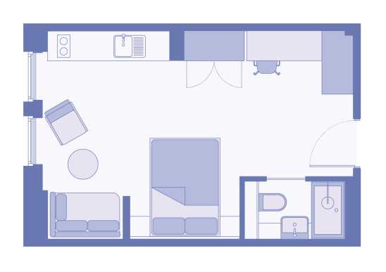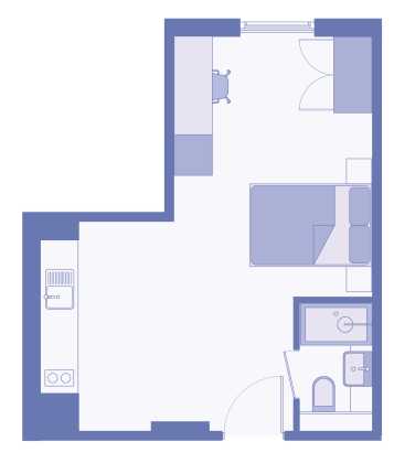Our Roomy Studios come in a variety of layouts, ranging from 25.4 to 31.3 sq ft, so you can find the perfect fit. Some even include a terrace — great for soaking up the sun, catching a breeze, or just having a moment to yourself — giving you space, flexibility, and a spot to make your own.